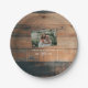 Este diseño presenta un fondo rústico de madera de madera con la foto de su pareja. El fondo rústico de madera marrón se complementa con el texto blanco y con la foto personal que se muestra en el fondo de madera con unos rústicos tornillos roscados. Los tonos marrones del grano de madera crean un ambiente rústico de granero que parece jardín. Elegante diseño de platos de boda con elementos modernos. También hay disponibles invitaciones de boda coincidentes y otros artículos de papelería.