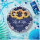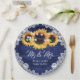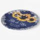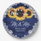 Plato De Papel Boda de girasoles de encaje de madera rústica azul