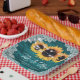 Platos de papel de boda floral rústicos turquesa elegantes con girasoles, luces de cuerda y delicado encaje floral sobre un fondo de madera de granero. Artículos coincidentes disponibles.