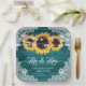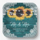 Plato De Papel Boda de girasoles de encaje de madera rústica turq