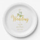 Plato De Papel Boda de Invierno Elegante Guión de Oro Mistletoe