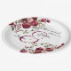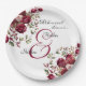 Este elegante plato de papel Boda de Borgoña Floral se puede personalizar con sus nombres y fecha de boda.