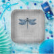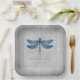 Personalice un plato de papel único para los invitados de la boda con un juego de placas de papel Boda de la libélula con ruedas. El diseño de la Placa de papel presenta una libélula con guijarros en forma de bigota frente a un fondo vintage a rayas angustiadas. Personaliza con los nombres del novio y la novia junto con la fecha del boda. También hay material de boda adicional disponible con este diseño.