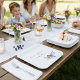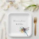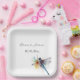 Un plato encantador con una delicada libélula acuarela, con sus vibrantes alas iridiscentes en tonos azules, amarillos y rojos, añadiendo un toque caprichoso y elegante. El texto está muy bien diseñado en una combinación de fuentes Emeline y Parisian, combinando sofisticación moderna con clasicismo atemporal. El fondo suave, blanco roto o marfil realza el efecto acuarela etéreo, creando una estética onírica y romántica. Perfecto para bodas y ocasiones especiales, este plato captura la belleza de la naturaleza con un refinado estilo artístico.