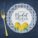 Placa de papel de limón de bonito con mampostería de limones y azulejos italianos. Perfecto para tu ducha de novia con limón azul azules. Diseñado para ti por Blackberry Boulevard.
