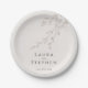 Estas clásicas placas de papel de boda blancas personalizadas con tipografía moderna y diseño botánico lucen frescas y elegantes. Siéntase libre de editarlas con sus nombres y fecha de boda. También están disponibles invitaciones, confirmaciones de asistencia y tarjetas de inclusión coincidentes, así como papelería para el día de la boda.