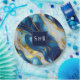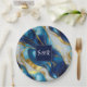 Plato De Papel Boda de mármol blanco, azul y oro falso con monogr