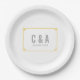 Platos de papel Boda de Moda Deco sencillos y minimalistas con un moderno borde ornamental de arte de color amarillo primarosa. Estos platos clásicos y elegantes son fáciles de personalizar con los detalles de su boda. Para obtener más opciones de personalización, haga clic en Personalizar.