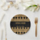 Platos de papel boda de patrón deco retro de color amarillo dorado y negro. Estilo de los años 20.