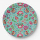 Plato De Papel boda de patrón turquesa de flor folclórica brillan