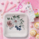 Plato De Papel boda de vegetación floral azul rosa