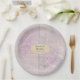 Platos de papel para boda de lavanda púrpura decoupage de álbum vintage diseñados para ser personalizados rápida y fácilmente según los detalles de su evento.