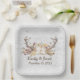 Hormigas de ciervo con flores y plumas de otoño sobre el fondo de un árbol de abedules blancos. El texto es editable.