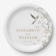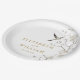 Estos platos modernos, elegantes y dorados de chinoiserie floral de papel para bodas en el jardín pueden personalizarse con su información en una tipografía elegante. Diseñado por Thisisnotme©