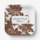 Personalice estas placas de papel Boda de estampado de hojas de arce marrones naturales para su uso en su recepción matrimonial de madera de septiembre, octubre o noviembre o en su ducha de novia. Estos platos desechables de bodas personalizados de la temática de los bosques presentan una fotografía de naturaleza cercana pintada digitalmente de hojas de arce coreanas marrón con un fondo blanco.