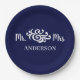 Clásicos platos de papel para la ducha de boda en azul marino y blanco con Mr & Mrs en un guión elegante. Hermosas parejas duchan o decoran la recepción de bodas para parejas recién casadas. Personalice el apellido de la novia y el novio. También puede personalizar para que coincida con los colores bodas cambiando el color de fondo y/o el color del texto. Haga clic en el botón Personalizar y, a continuación, haga clic en el vínculo Personalizar adicional.