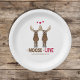 Alce caprichoso lindo que dice "debe ser amor". Este diseño presenta una fiesta de compromiso de boda, alce divertido lindo caprichoso, con servilleta de papel de cóctel de corazones rojos, tipografía moderna con estilo tendencia guión, excelente para plato de papel de cena de ensayo de novio, humor simple minimalista minimalista de dibujos animados, plato de debe ser amor, pareja recién casada con dicho divertido, pareja comprometida recién comprometida, fiesta personalizada personalizada hecha a medida