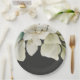 Platos de papel para boda elegante con detalle de follaje sofisticado verde apagado de Ricaso