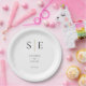 Plato De Papel Boda Elegante Monograma Negro y Dorado