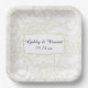 Personalice estas placas de papel Boda de bonito Faux White Lace para su uso en la recepción matrimonial o en la ducha de novia. Estos elegantes platos desechables para bodas personalizadas incluyen una fotografía de primer plano de un intrincado encaje blanco.