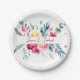 Plato De Papel Boda floral acuarela personalizada rosa y fucsia