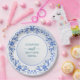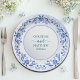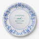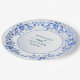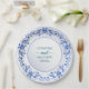 Un diseño de boda elegante con flores azules, diseño que imita la porcelana y caligrafía elegante que puedes personalizar con tus datos.