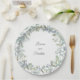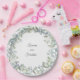 Con delicadas hojas verdes frescas con tonos lilos, este plato de papel boda se puede personalizar con sus nombres. Diseñado por Thisisnotme©