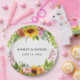 Acuarela de color girasol con Rosas, peonías y plantas de papel Boda verde