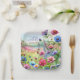 Hermosas placas de papel personalizadas con un campo de flores en acuarela en rosa, azul y púrpura. Agrega las iniciales de la novia y el novio junto con la fecha de la boda en el área personalizada.
