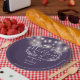 Estos elegantes platos de papel con luces de cuerda de bonito y un floral dibujado a mano se pueden personalizar con tu información en letras blancas de moda sobre un fondo morado. Diseñado por Thisisnotme©
