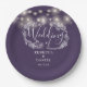 Plato De Papel Boda Floral Purple Script de las luces de cadena