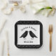 Este increíble conjunto de platos de papel cuadrados para fiestas de boda presenta una imagen de arte digital de una pareja de hermosos cuervos negros que se enfrentan y parecen besarse. Son negros con ojos brillantes y picos y patas grises.