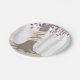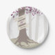 Platos con un ilustracion de un árbol con un tronco envuelto en un cartel. Las hojas son lavanda. Personalizar con nombres. Busque las invitaciones a la boda coincidentes y más en Jill's Paperie.