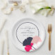 Agrega un toque de elegancia sin gastar demasiado con platos de papel personalizados para la recepción de tu boda. Haz una declaración con colores audaces y un gráfico limpio y simple. Características ilustraciones de hojas de ginkgo en azul marino, rosa suave y magenta teñido de coral brillante.