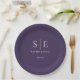 Esta moda de placa de papel minimalista de color morado y boda dorado se puede personalizar con sus iniciales de monograma, nombres y fecha especial. Diseñado por Thisisnotme©