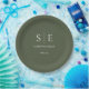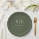 Plato De Papel Boda Monograma Verde Oliva