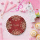 Plato De Papel Boda Monogramado de Estilo Indio Rojo y Oro