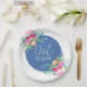 Plato De Papel Boda Personalizada Floral Azul Capullo de Rosa Ros