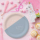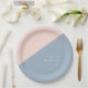 Plato De Papel Boda Polvo Azul Moderno Elegante Monograma