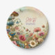 placas de papel con temática básica de bonito para un boda, cena de ensayo o fiesta de ducha de novia. Acuarela de setas, flores y mariposas en malva, azul polvoriento y beige. Añadir las iniciales y la fecha del boda de la pareja en el área de personalización.