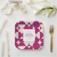 Los platos de boda de papel en formato cuadrado con los nombres de la novia y del novio pueden añadir un toque personal y elegante a cualquier recepción nupcial. El diseño combina elementos retro vintage de los años 70 y 60, creando un ambiente único y nostálgico en una llamativa paleta morada y crema. Su combinación única de patrones retro vintage y un toque personalizado los convierte en una adición memorable a cualquier recepción de boda, lo que permite a los clientes celebrar la unión de la pareja mientras se sumergen en un ambiente nostálgico.