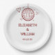 Estas placas de papel retro rojo de disco groovy boda se pueden personalizar con su información en tipografía moderna. Diseñado por Thisisnotme©