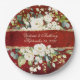 Plato De Papel Boda Rojo Rústico Botánico De Oro Blanco Pa
