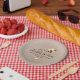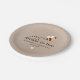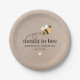 Plato de papel con ilustración de abeja con "meant to bee" en tipografía clásica superpuesta sobre papel kraft. Artículos coincidentes en esta colección.