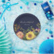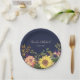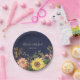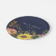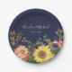 Agrega un encanto vibrante a la recepción de tu boda con estos platos de papel rústicos de color azul marino, adornados con flores de acuarela coloridas que incluyen girasoles, eucalipto y cardo. Personalizados con los nombres de la pareja y la fecha de la boda, este diseño es perfecto para bodas de otoño, recepciones al aire libre, celebraciones boho o fiestas de jardín. Elegantes y desechables, estos platos son ideales para mesas de postres, cócteles o cenas de ensayo.