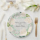 Artículos de fiesta de papel para despedida de soltera para que coincidan con el conjunto de invitaciones. Fondo de madera rústica en un revestimiento de gris suave blanco destaca las flores y hojas de acuarela pintadas a mano. Cambie la ocasión o los nombres fácilmente utilizando el campo de plantilla proporcionado. El diseño floral de acuarela pintado a mano tiene rosas de marfil melocotón con follaje de hojas recogidas para un diseño de jardín natural al aire libre. Derechos de autor, todos los derechos reservados.