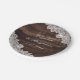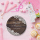 Elegante y romántico platos rústicos de papel casero inspirados en la madera de granero y el encaje floral blanco.