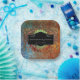 Un plato de papel de temática industrial, vintage, steampunk. Personaliza con los nombres de la Novia y el Groom y la fecha.