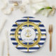 Plato De Papel Bodas de rayas azules marinas y doradas náuticas