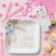 Añada un toque final a su ducha de bebé con estos platos, con follaje tropical y rosas azules.